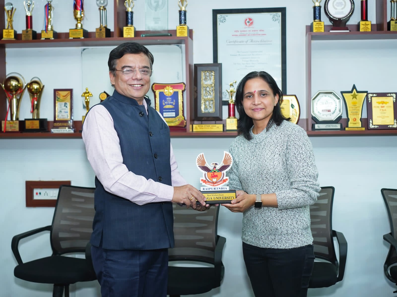 Dr. Bhumika Gupta from Institut Mines-Télécom Business School Evry, France, visited Kalinga University, Naya Raipur, today.