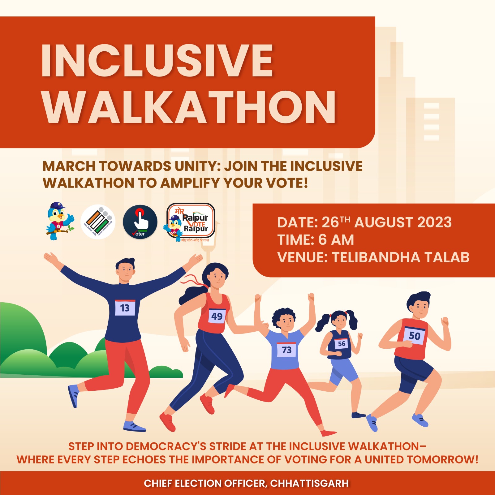 On 26th August 2023, Kalinga University Students along with faculties participated in the “Inclusive Walkathon”, an event aimed for enhancing voter awareness and engagement by the Chief Election Officer, CG.
