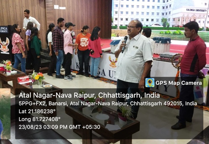 On 23rd August 2023, Kalinga University successfully organized an awareness and training session in collaboration with the Election Commission of Chhattisgarh to educate students on “How to use Electronic Voting Machines (EVMs) during elections” on the university campus.