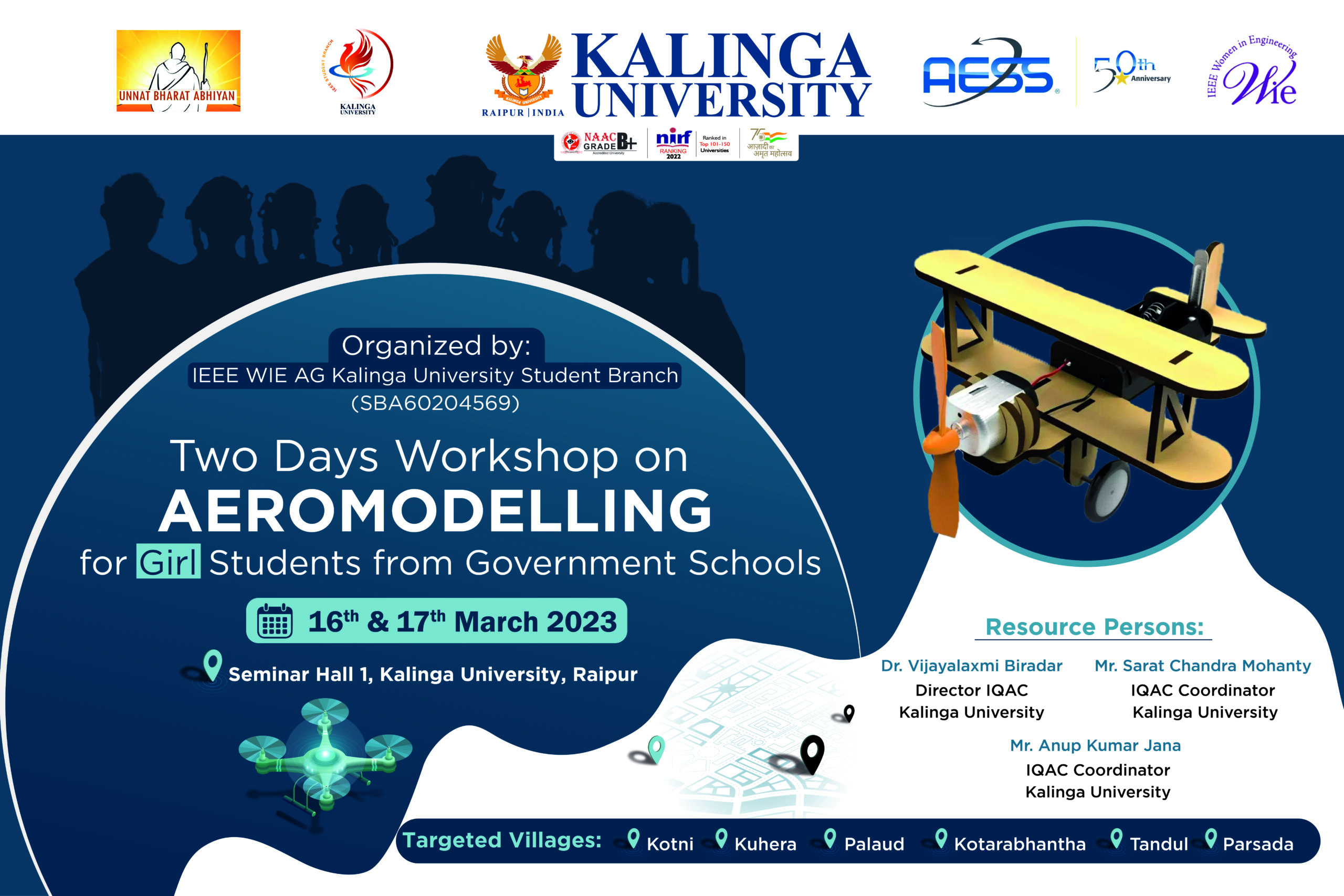 Raipur, March 17 – Aeromodelling alludes to the development of model airplanes that can be static or practical. IEEE WIE AG Kalinga University Student Branch (SBA60204569) hosted a Two Days Aerodynamics Workshop, for girl students from Government Schools on march 16th and 17th . Kalinga University has adopted 6 villages under the Unnat Bharat Abhiyan (UBA) scheme of the Government of India. The university has also got an active IEEE Women in Engineering (WIE) Affinity Group that initiates programs to facilitate women in our society. The UBA team and IEEE WIE of the university have taken the initiative to train the girl students about one of the trending technologies, ‘aeromodelling’ in the adopted villages. Girl students from Palaud, Kotni, Tandul, and Kuhera participated in this workshop.