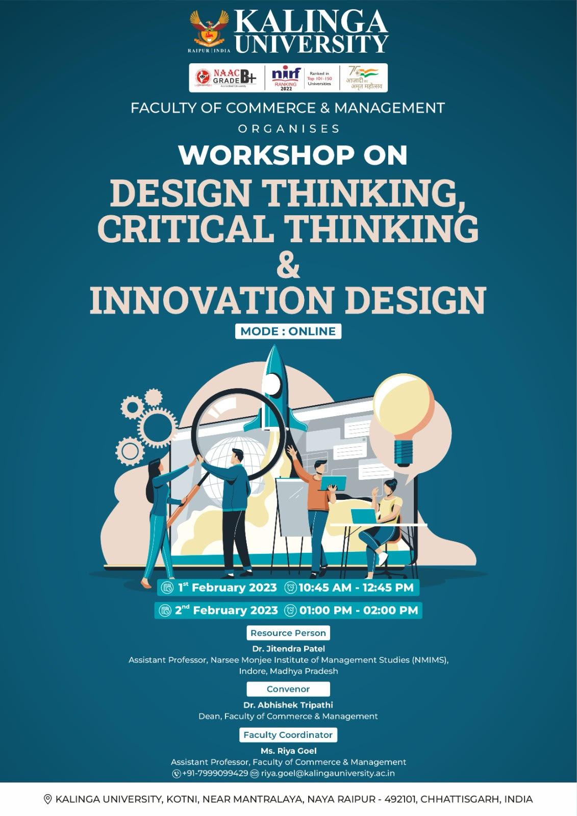 The Faculty of Commerce and Management organised a workshop on “DESIGN THINKING, CRITICAL THINKING & INNOVATION” for providing the students’ knowledge about state of the art perspectives, ideas, concepts and solutions related to the design and execution of innovation driven projects using design thinking principles.